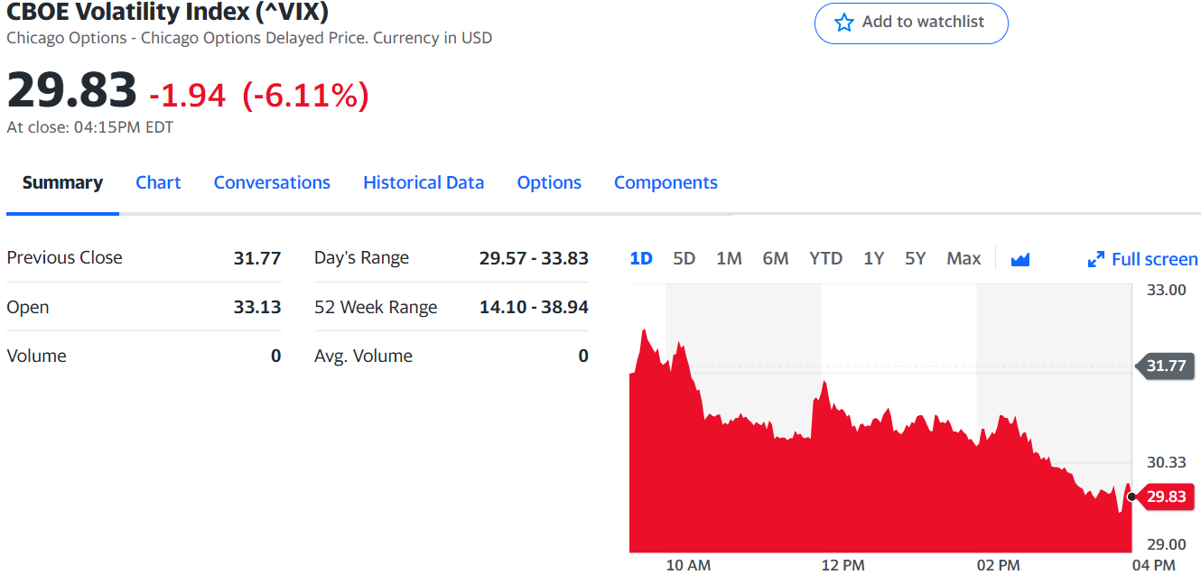 4. VIX 지수 (공포지수) : 대체로 VIX가 높아지면 주가는 폭락하는 경향.
