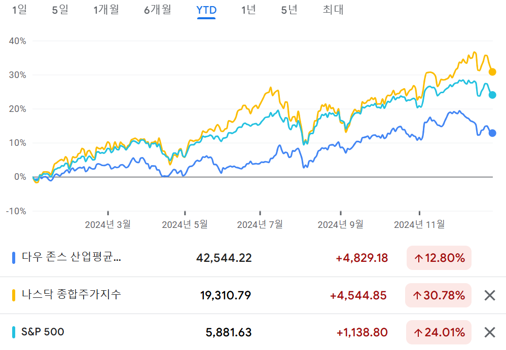1. - 다우 42,544.22 +12.80% +4,829.18 YTD