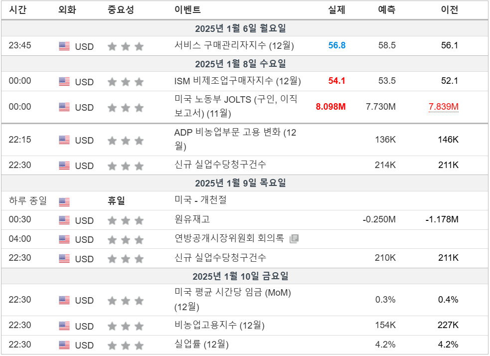 2. 금주 경제 캘린더