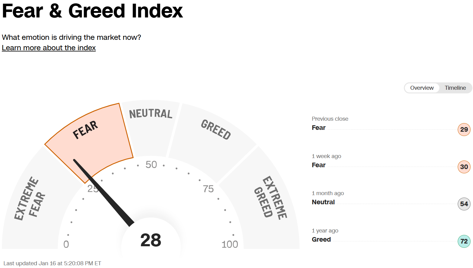 - VIX 지수 20 이하 : 과매수 구간 매도 고려 (흥분 구간)
