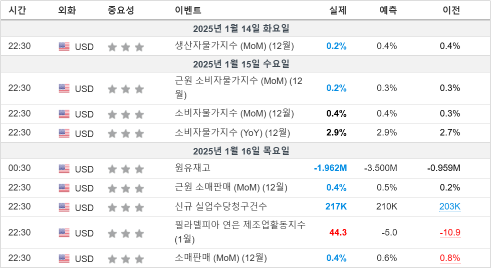 2. 금주 경제 캘린더