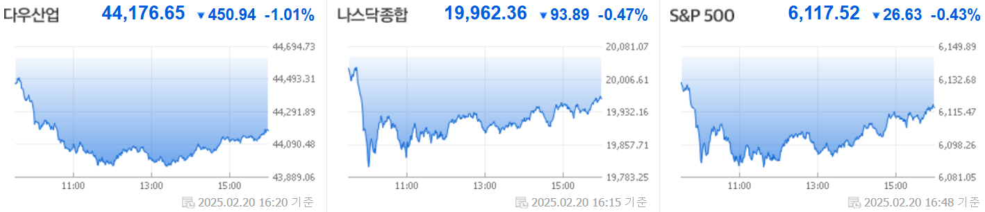 [2025.02.21] 미국 주식 정리 #월마트가 시사한 소비심리 악화…다우 1.01%↓, #아마존 분기 매출 월마트 처음 제쳤다…美 기업 첫 1위, #AI가 격차 키운다? "일 잘하는 사람들이 더 잘 활용하더라"