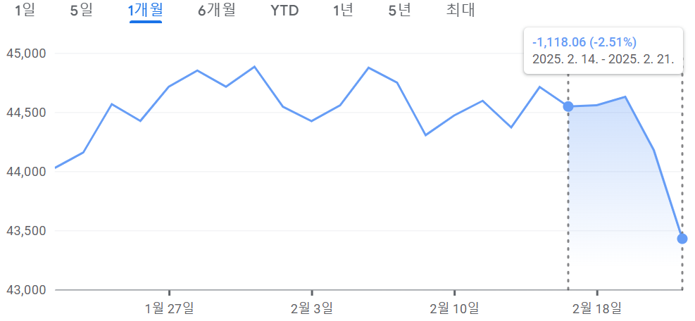 [2024.02.17~2025.02.21] 주간 미국 증시 정리 #나스닥 2.51%↓, #S&P500 1.66%↓, #다우 2.51%↓