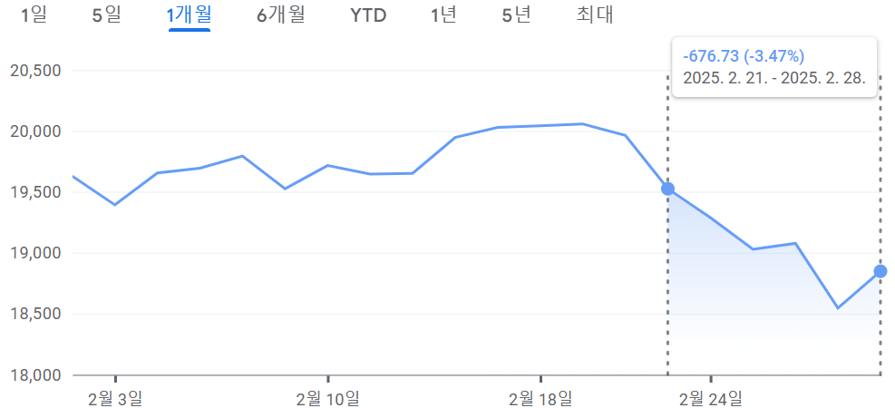 [2024.02.24~2025.02.28] 주간 미국 증시 정리 #나스닥 3.47%↓, #S&P500 0.98%↓, #다우 0.95%↑