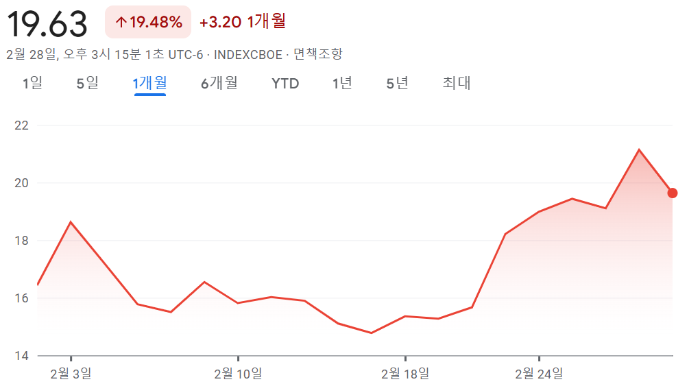 3. VIX 지수 (공포지수) : 대체로 VIX가 높아지면 주가는 폭락하는 경향.