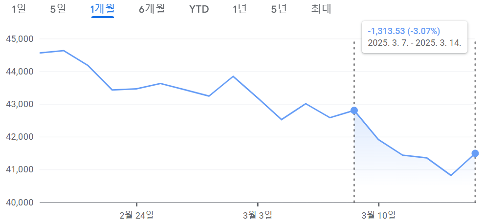 [2024.03.10~2025.03.14] 주간 미국 증시 정리 #나스닥 2.43%↓, #S&P500 2.27%↓, #다우 3.07%↓