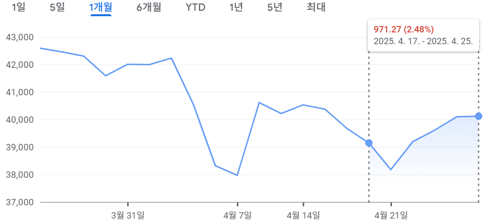 [2024.04.21~2025.04.25] 주간 미국 증시 정리 #나스닥 6.73%↑, #S&P500 4.59%↑, #다우 2.48%↑