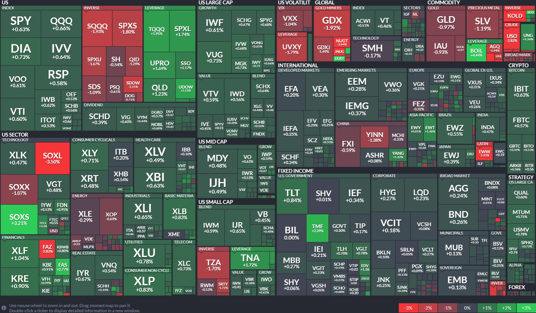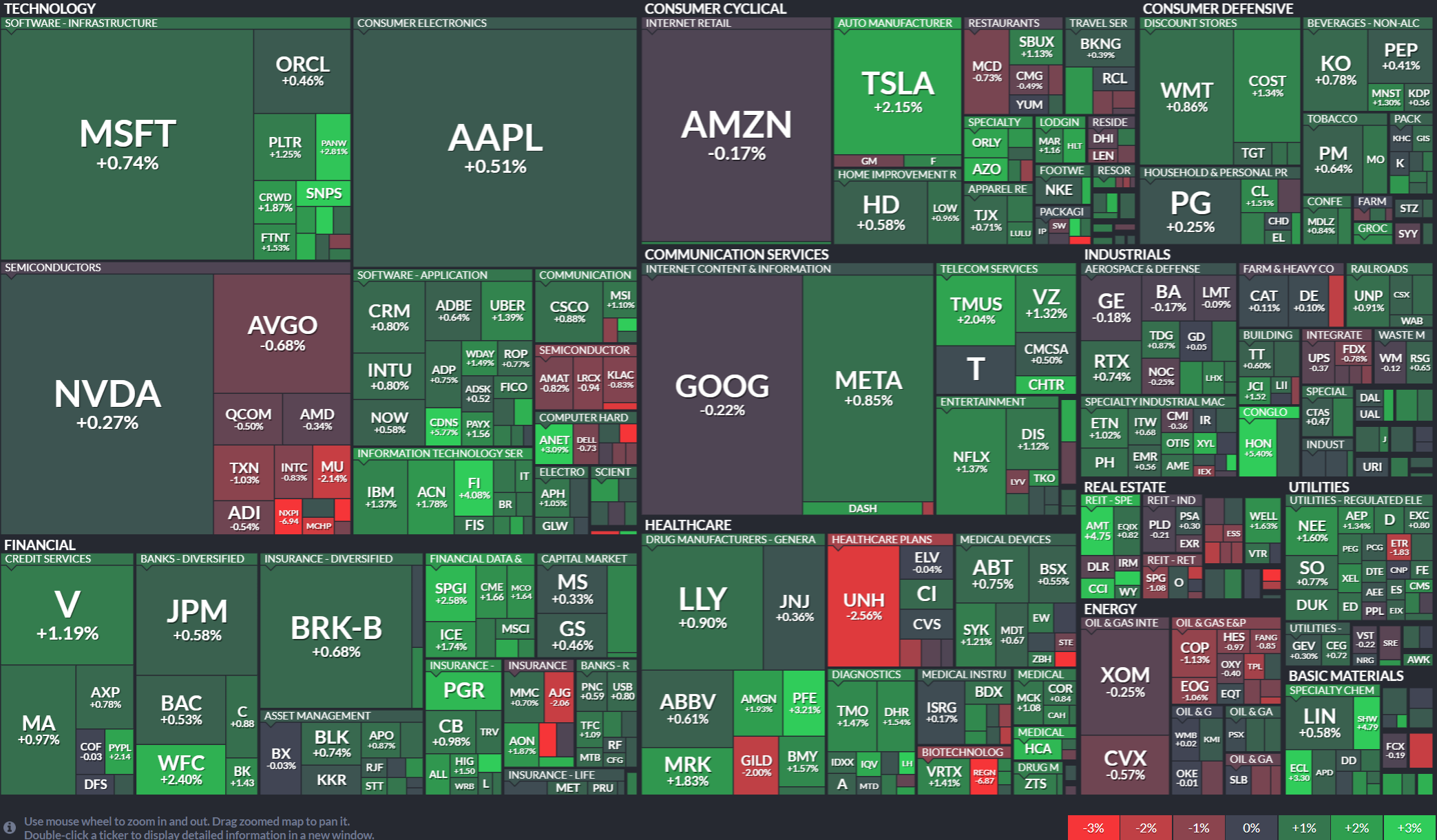 1. 다우 +0.75%,나스닥 +0.55%,S&P 500 +0.58%