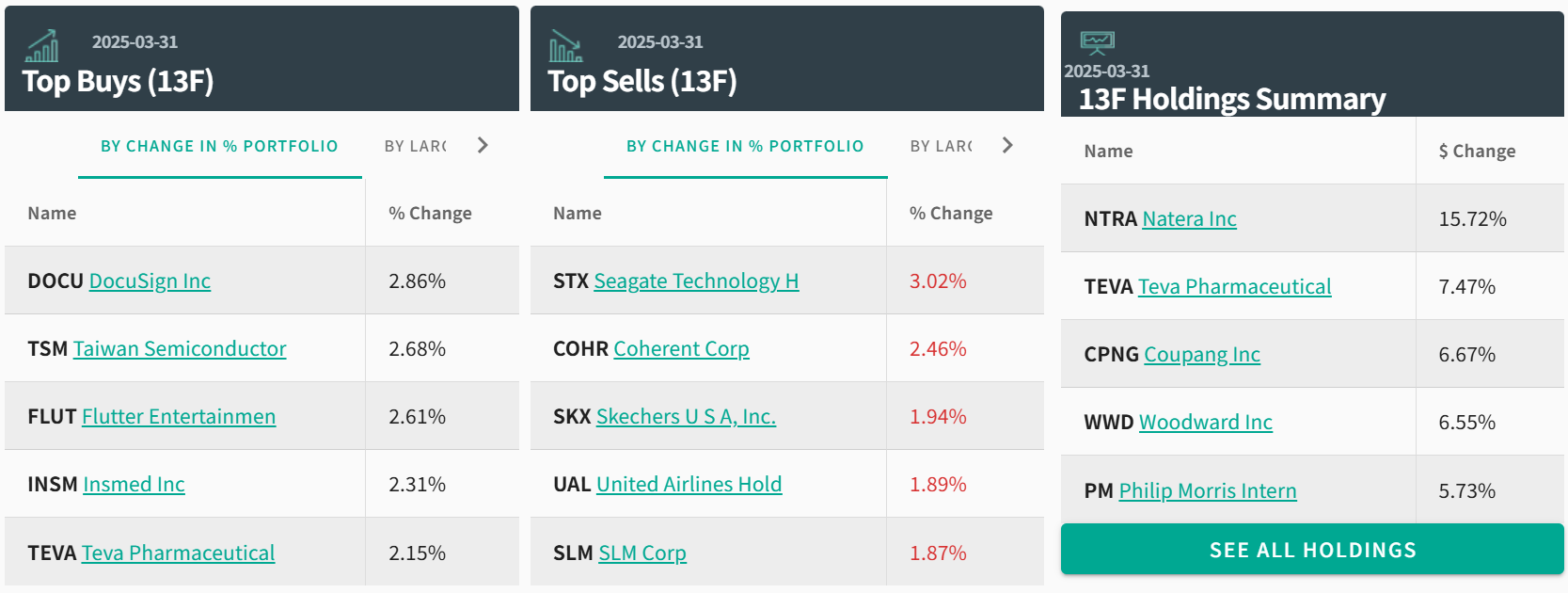 13F 은 자산운용 규모가 1억 달리 이상인 기관투자자들이 분기마다 미국 증권 거래 위원회에 제출해야 하는 문서입니다.