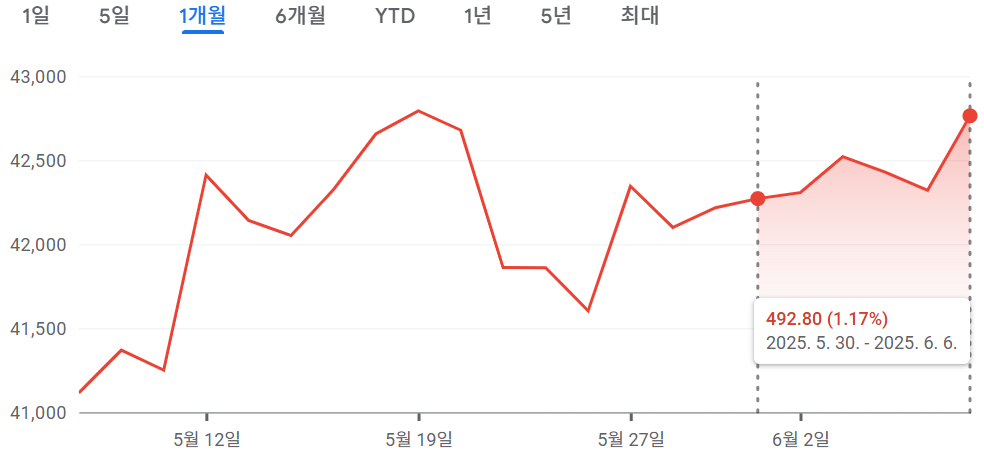 [2024.06.02~2025.06.06] 주간 미국 증시 정리 #나스닥 2.18%↑, #S&P500 1.50%↑, #다우 1.17%↑