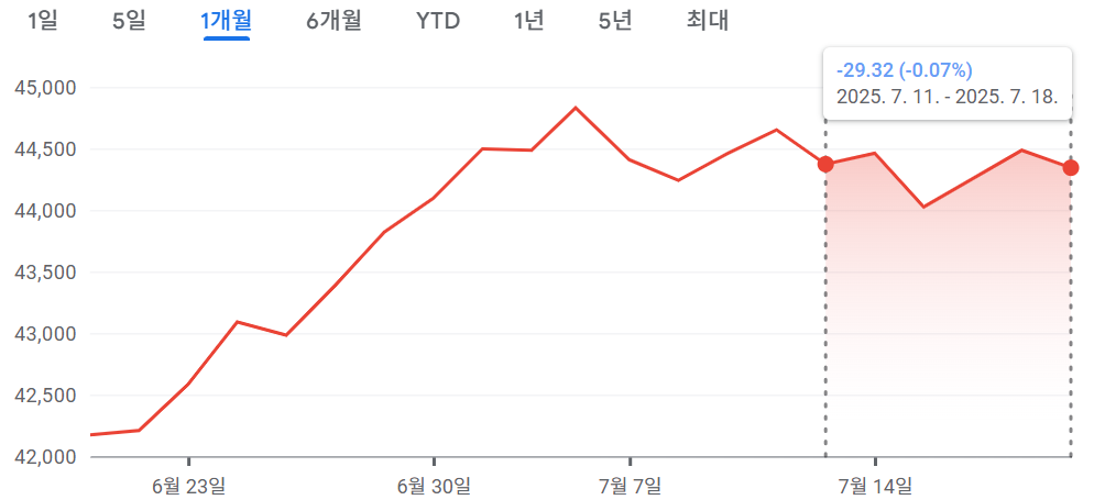 [2024.07.14~2025.07.18] 주간 미국 증시 정리 #나스닥 1.51%↑, #S&P500 0.59%↑, #다우 0.07%↓