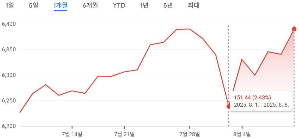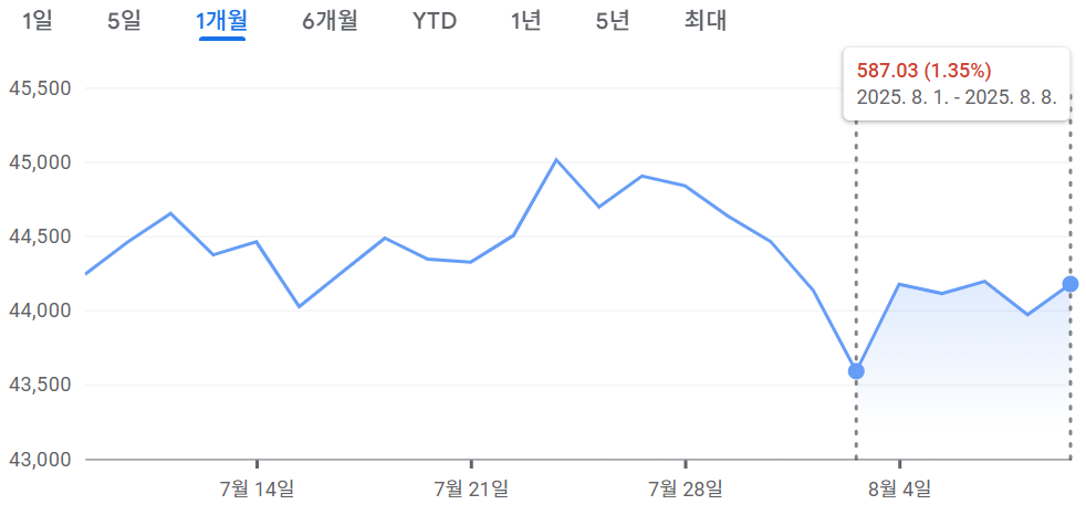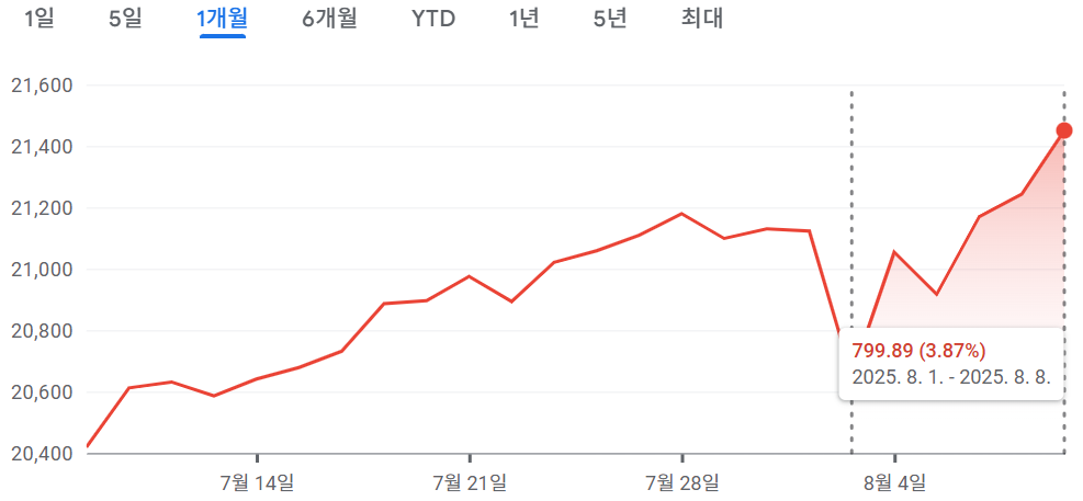 [2024.08.04~2025.08.08] 주간 미국 증시 정리 #나스닥 3.87%↑, #S&P500 2.43%↑, #다우 1.35%↑
