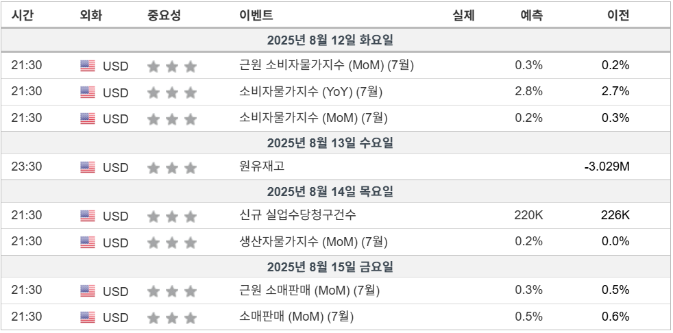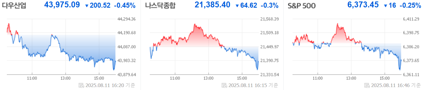 [2025.08.12] 미국 주식 정리 #CPI 앞두고 경계심…하락 마감, #'반도체 풍향계' 마이크론 실적 가이던스 상향…"AI 전례없는 수요", #트럼프 "금은 무관세"…금값 급락
