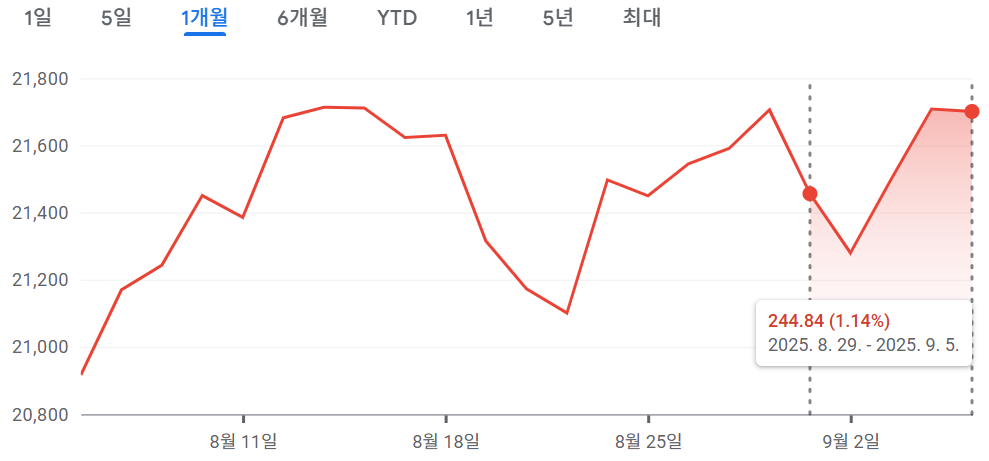 [2024.09.01~2025.09.05] 주간 미국 증시 정리 #나스닥 1.14%↑, #S&P500 0.33%↑, #다우 0.32%↓