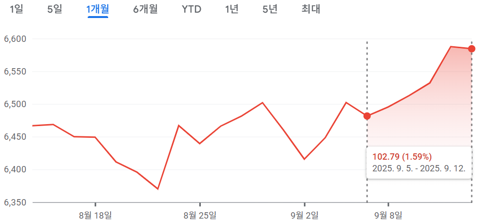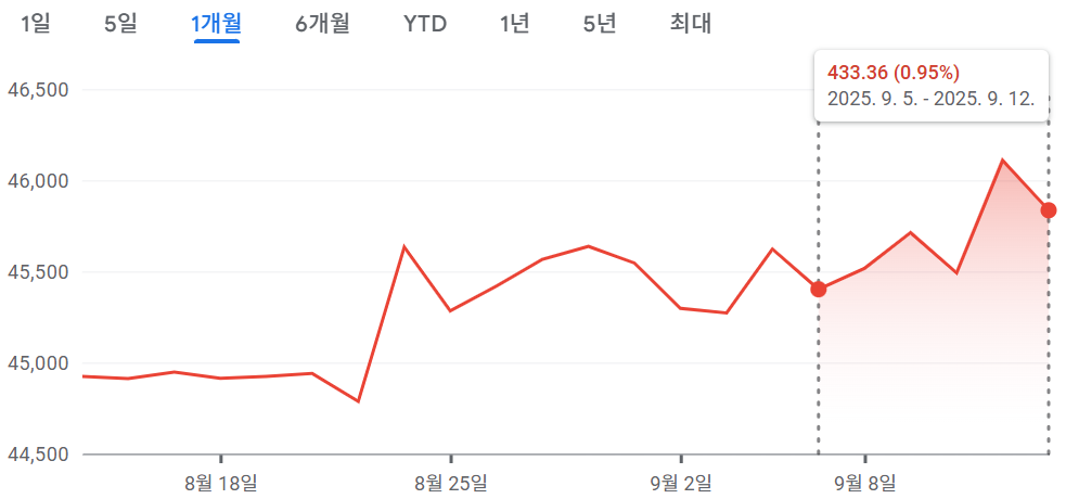 [2024.09.08~2025.09.12] 주간 미국 증시 정리 #나스닥 1.59%↑, #S&P500 0.33%↑, #다우 0.95%↑