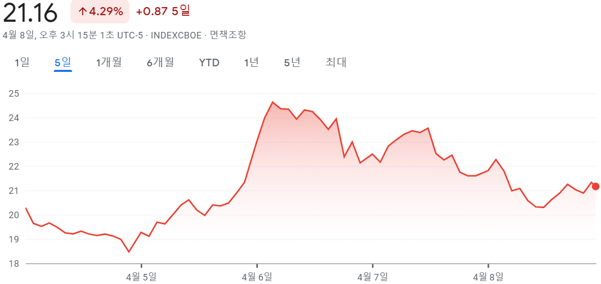 3. VIX 지수 (공포지수) : 대체로 VIX가 높아지면 주가는 폭락하는 경향.