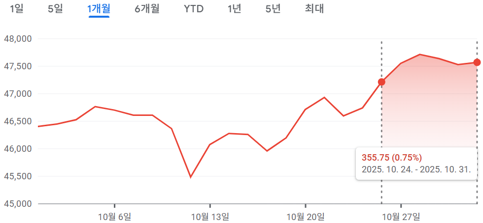 [2024.10.27~2025.10.31] 주간 미국 증시 정리 #나스닥 2.24%↑, #S&P500 0.71%↑, #다우 0.75%↑
