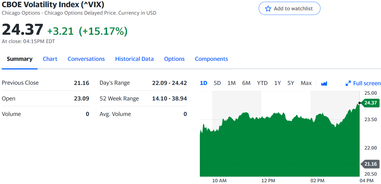 5. VIX 지수 (공포지수) : 대체로 VIX가 높아지면 주가는 폭락하는 경향.