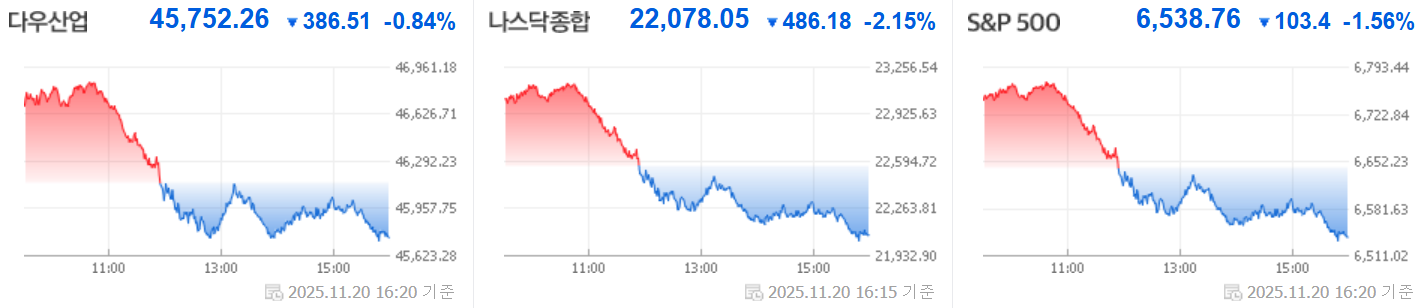 [2025.11.21] 미국 주식 정리 #젠슨 황도 못 구했다…기술주 투매에 동반 하락 마감, #연준 금리 인하 논쟁 속 ‘자산가격 급락·프라이빗 크레딧’ 금융불안 경고, #월마트 나스닥행… 연간 매출전망도 두 번째 상향