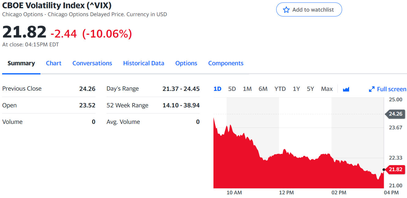 - VIX 지수 20 이하 : 과매수 구간 매도 고려 (흥분 구간)