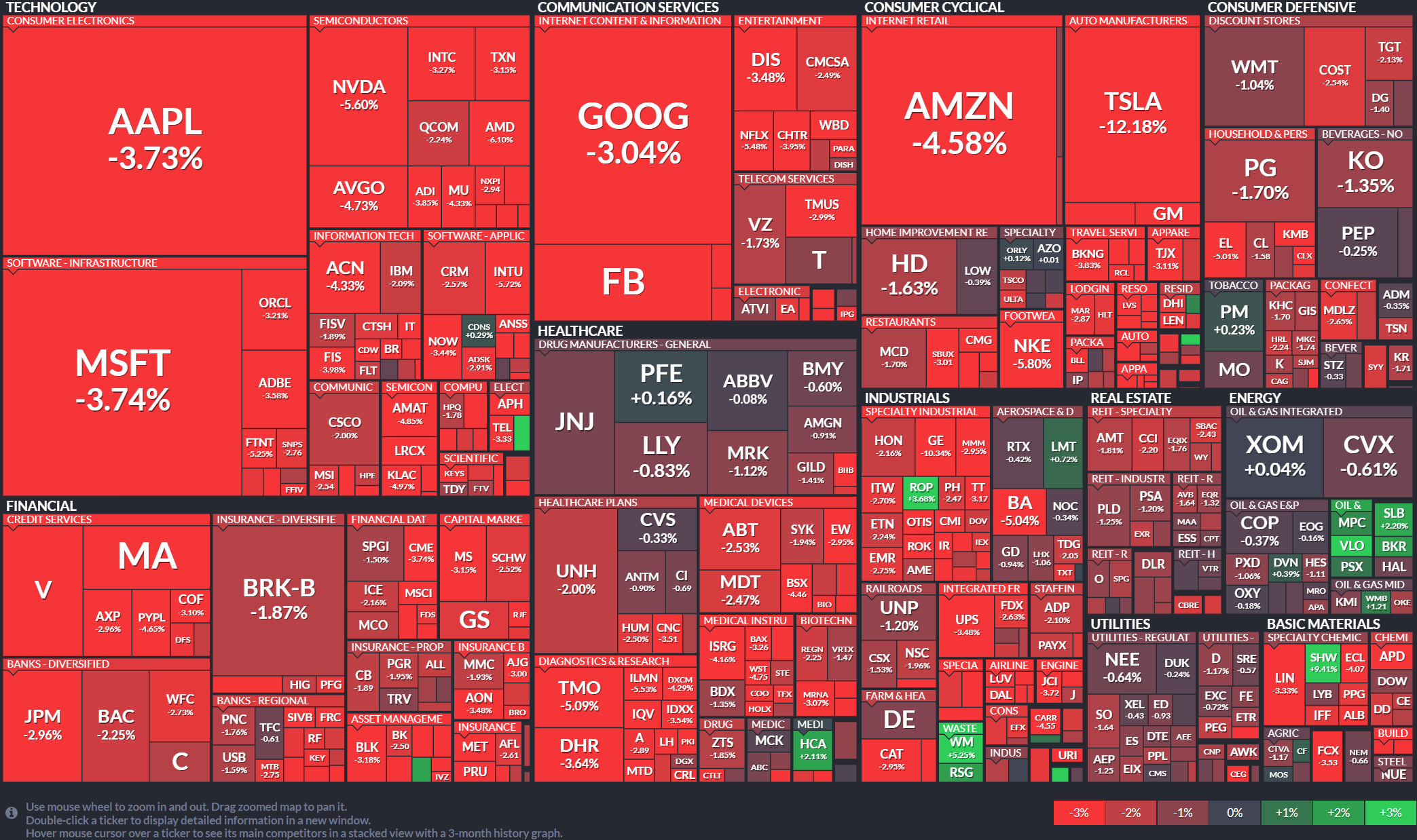 1. 다우 -2.38%,나스닥 -3.95%,S&P 500 -2.81%