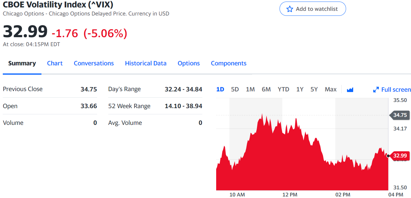 5. VIX 지수 (공포지수) : 대체로 VIX가 높아지면 주가는 폭락하는 경향.