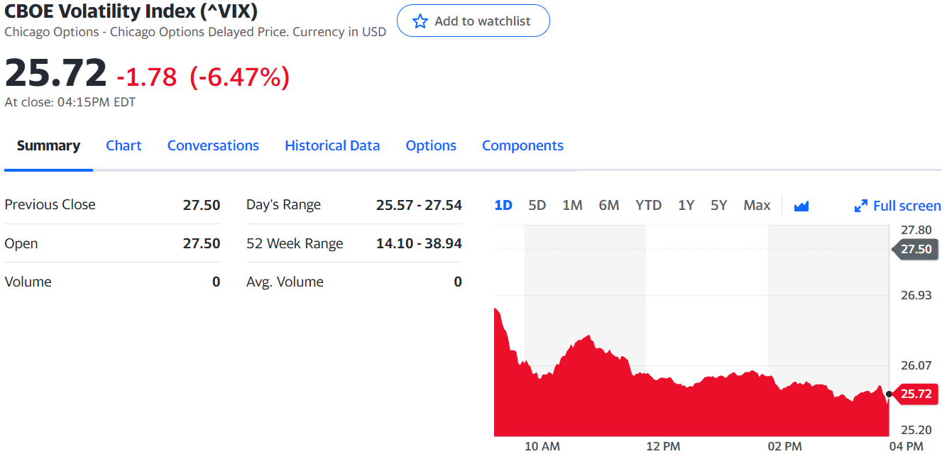 5. VIX 지수 (공포지수) : 대체로 VIX가 높아지면 주가는 폭락하는 경향.