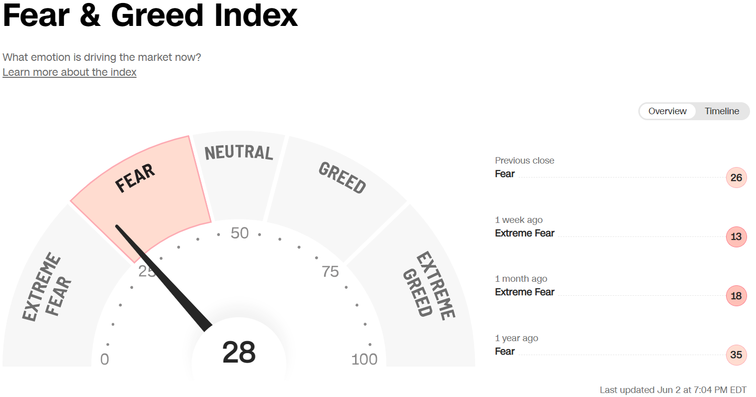 - VIX 지수 20 이하 : 과매수 구간 매도 고려 (흥분 구간)