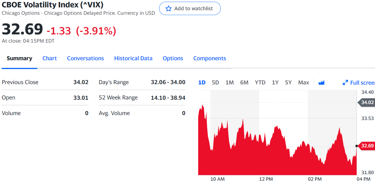 5. VIX 지수 (공포지수) : 대체로 VIX가 높아지면 주가는 폭락하는 경향.