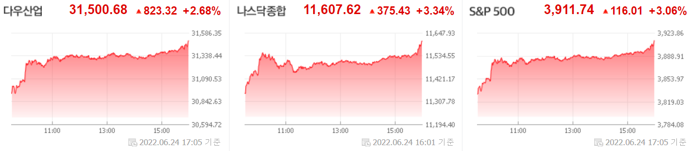 1. 다우 +2.68%,나스닥 +3.34%,S&P 500 +3.06%