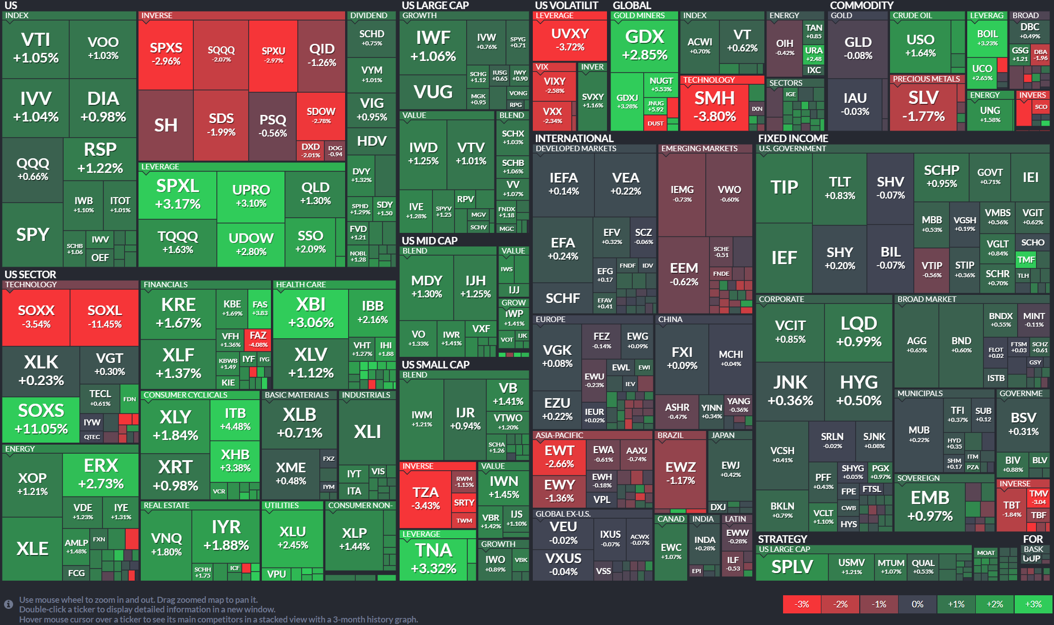 1. 다우 +1.05%,나스닥 +0.9%,S&P 500 +1.06%