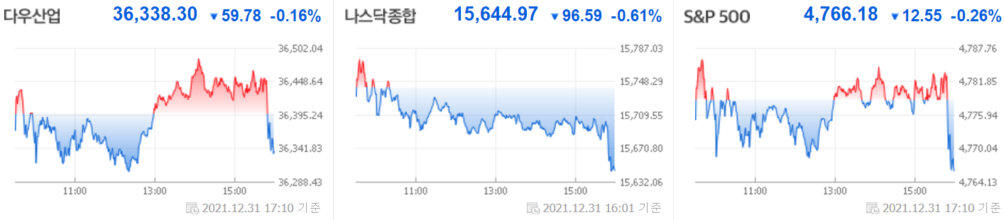 뉴욕증시는 2021년 마지막 거래일에 하락했다