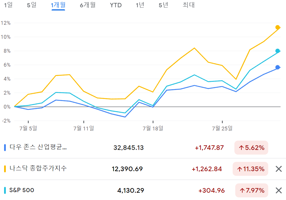 [2022.07] 월간 미국 증시 정리 #나스닥 11.35%↑, #S&P500 7.97%↑, #다우 5.62%↑