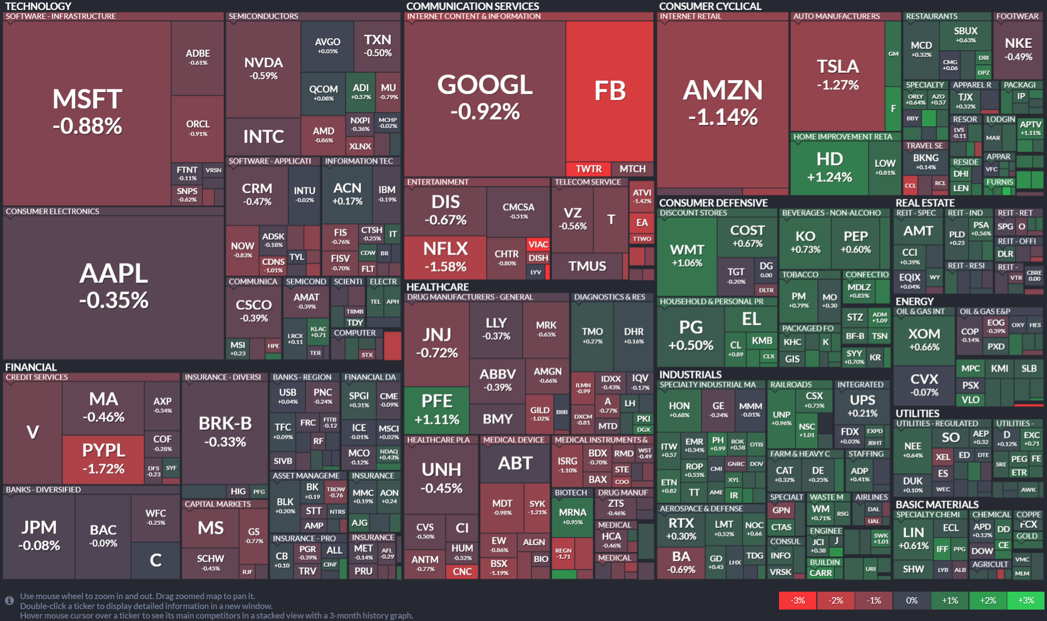 1. 다우 -0.16%,나스닥 -0.61%,S&P 500 -0.26%