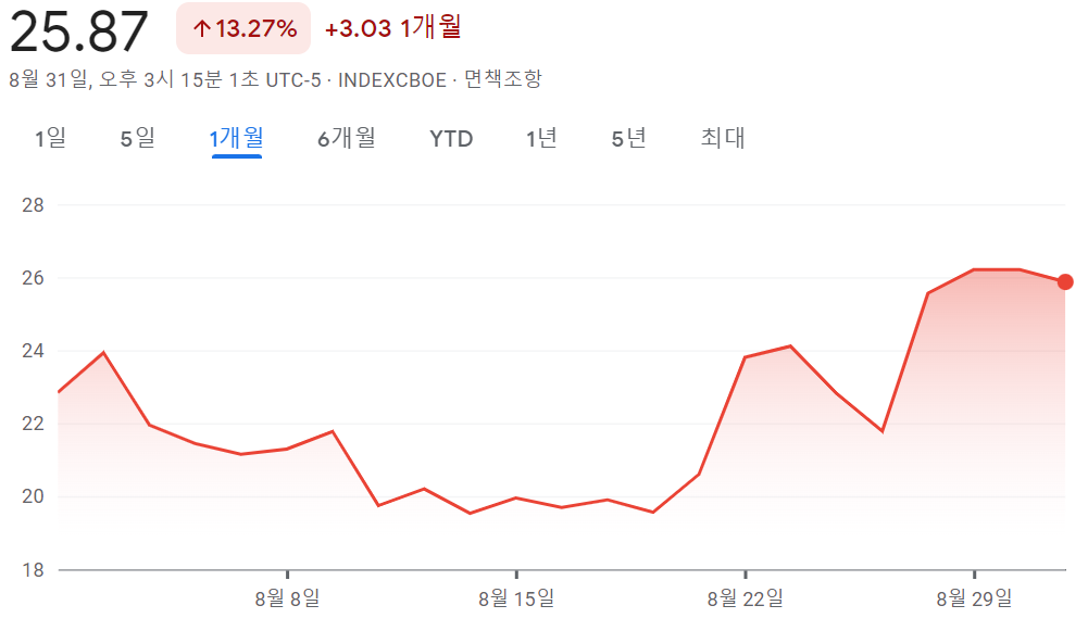 3. VIX 지수 (공포지수) : 대체로 VIX가 높아지면 주가는 폭락하는 경향.