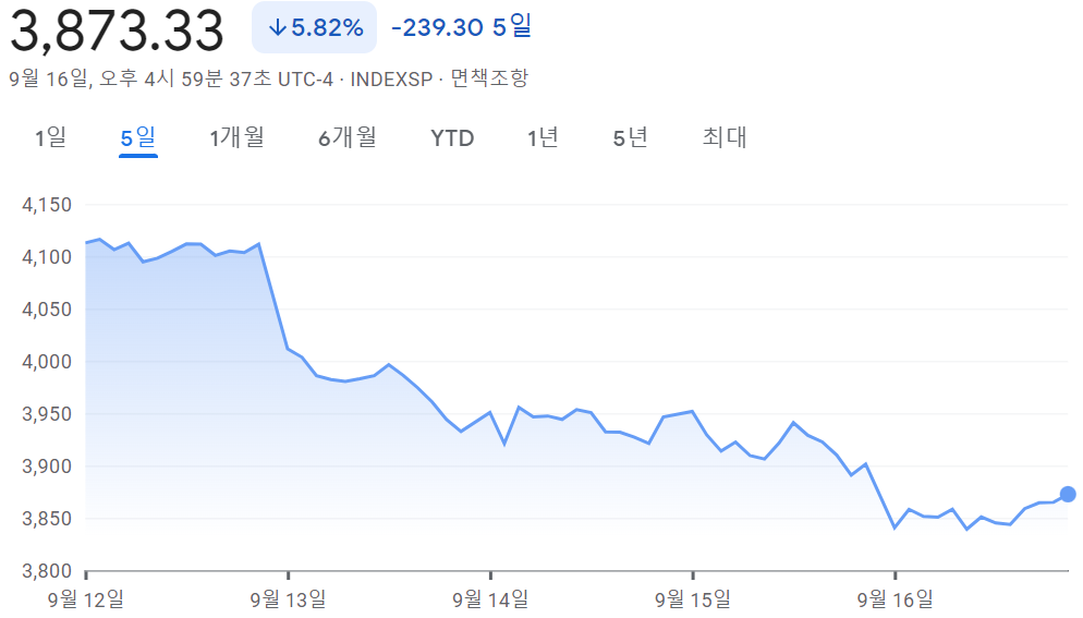 - S&P 500 3,873.33 -5.82% -239.30 5일