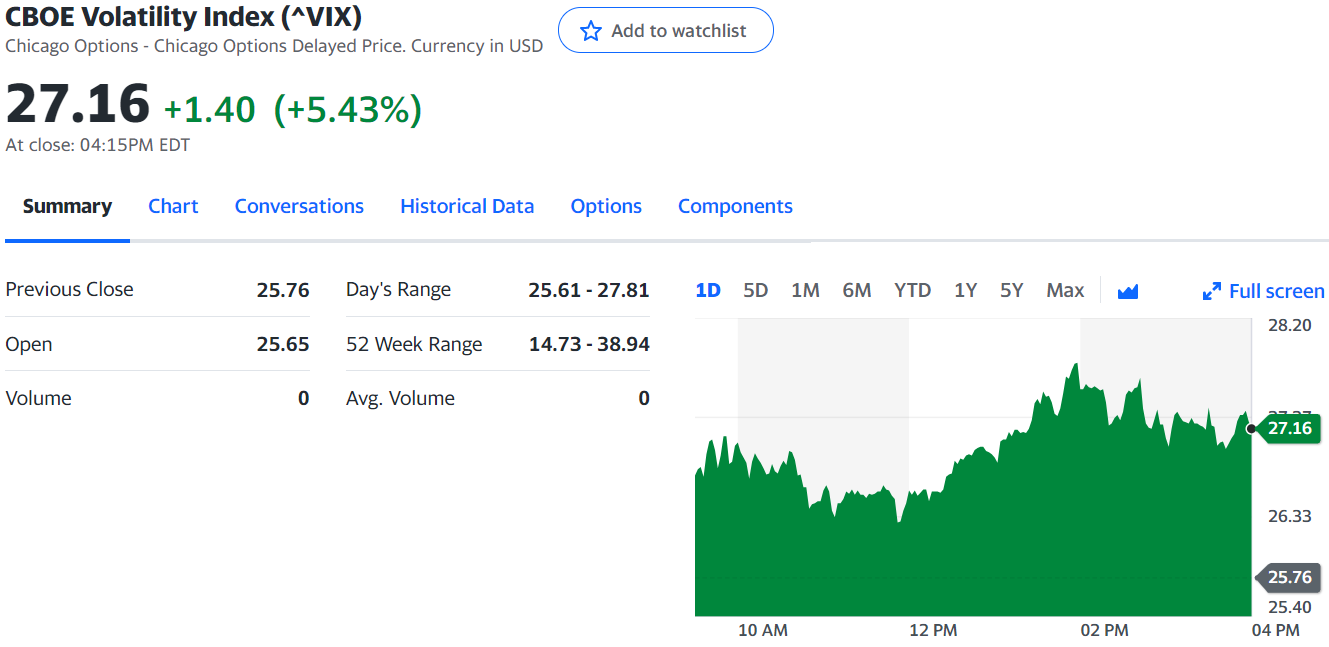 5. VIX 지수 (공포지수) : 대체로 VIX가 높아지면 주가는 폭락하는 경향.