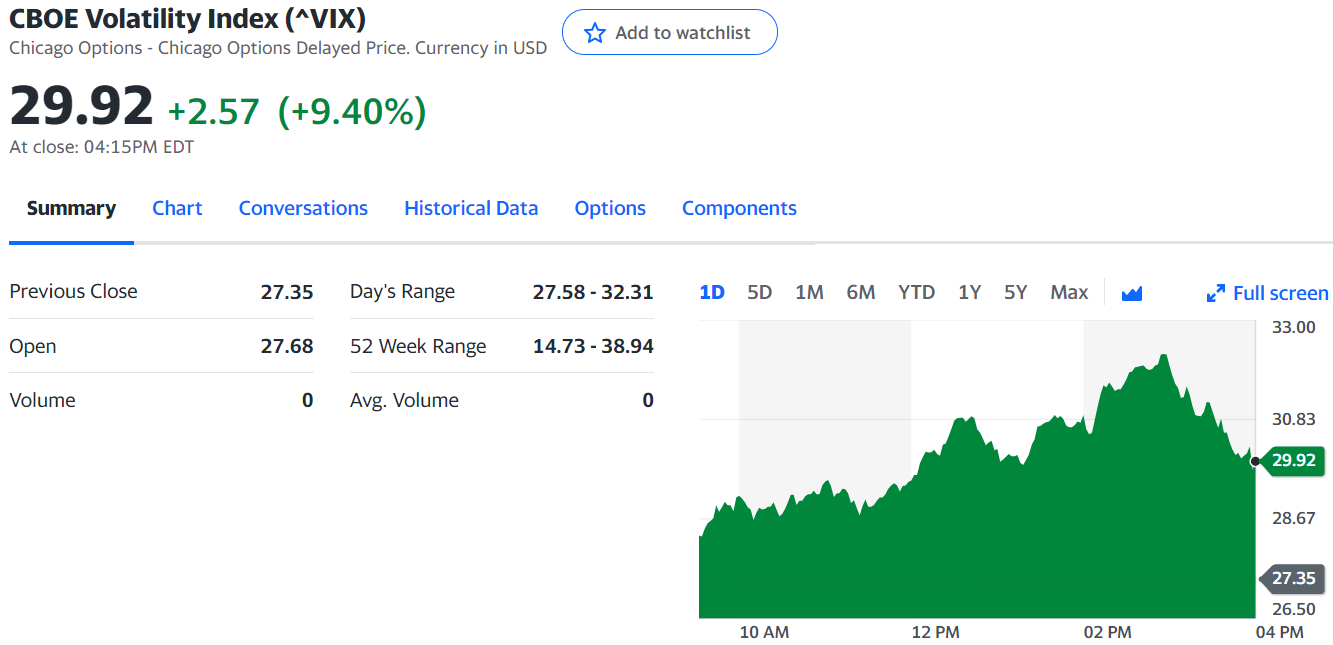 5. VIX 지수 (공포지수) : 대체로 VIX가 높아지면 주가는 폭락하는 경향.