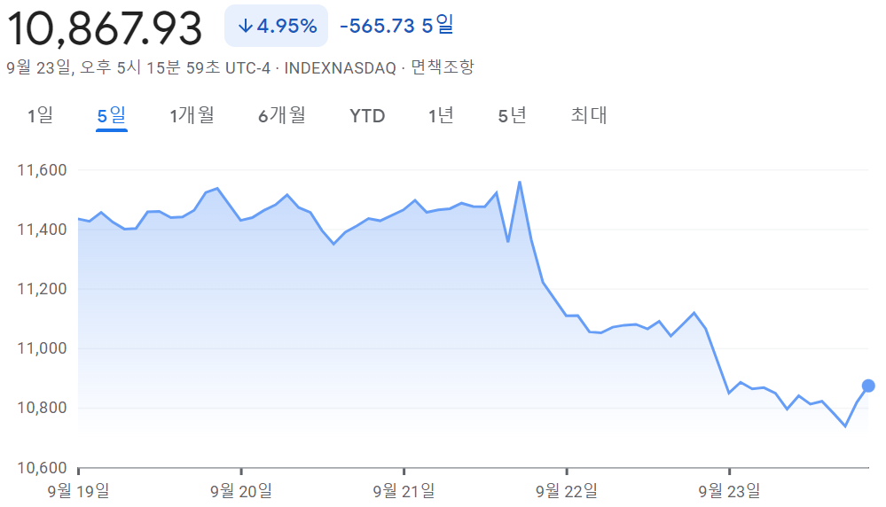 - 나스닥 10,867.93 -4.95% -565.73 5일