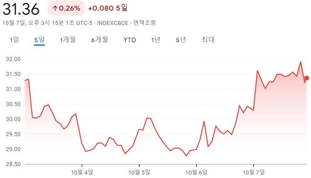 3. VIX 지수 (공포지수) : 대체로 VIX가 높아지면 주가는 폭락하는 경향.