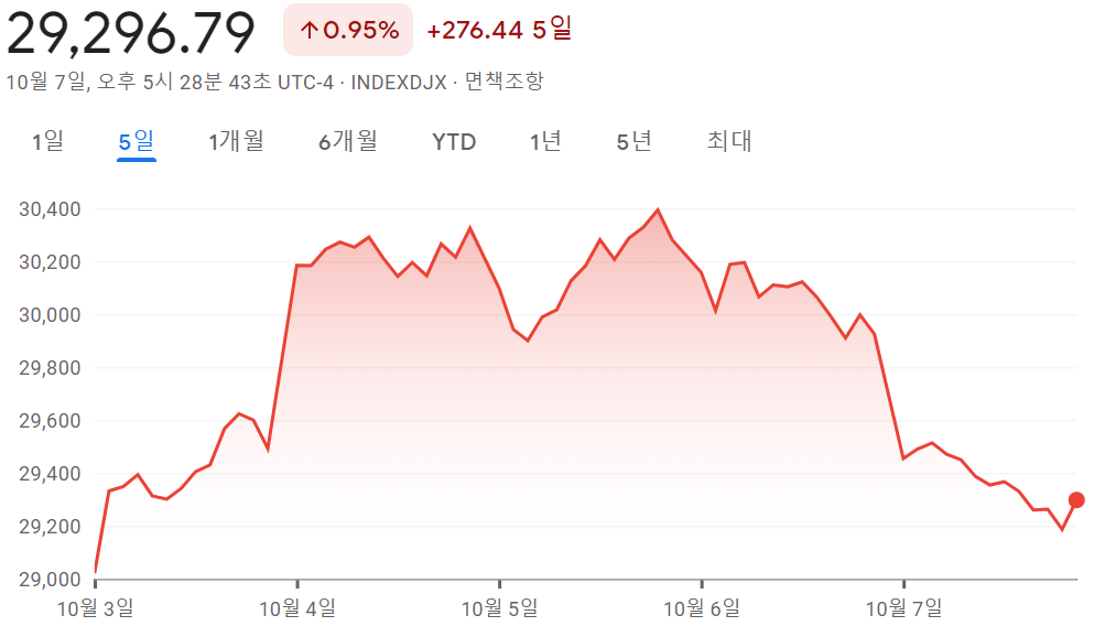 1. - 다우 29,296.79 +0.95% +276.44 5일