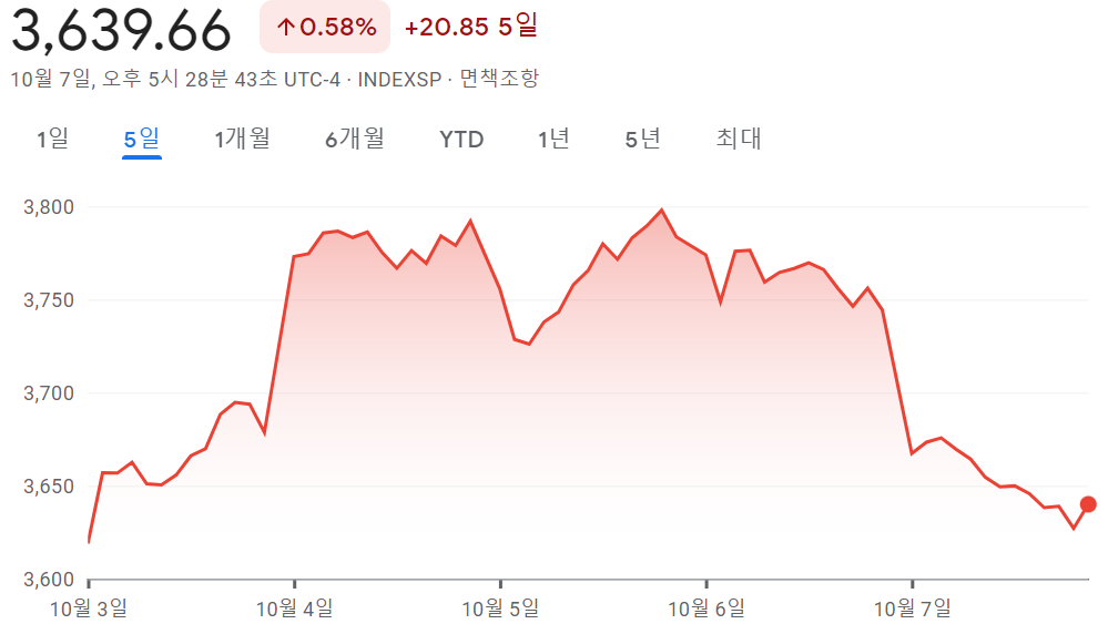 - S&P 500 3,639.66 +0.58% +20.85 5일