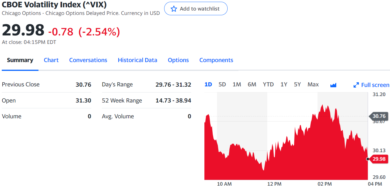 5. VIX 지수 (공포지수) : 대체로 VIX가 높아지면 주가는 폭락하는 경향.