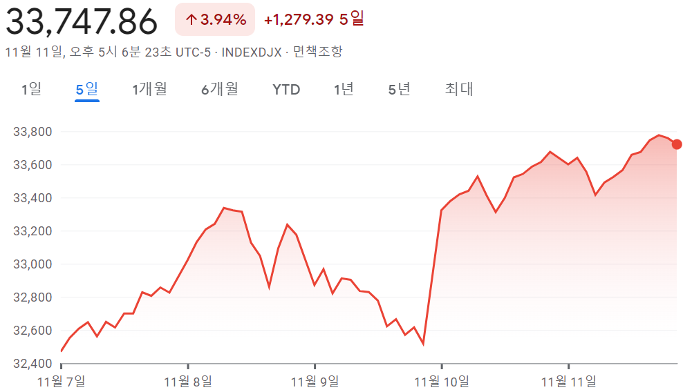 [2022.11.07~11.11] 주간 미국 증시 정리 #나스닥 8.33%↑, #S&P500 5.95%↑, #다우 3.94%↑