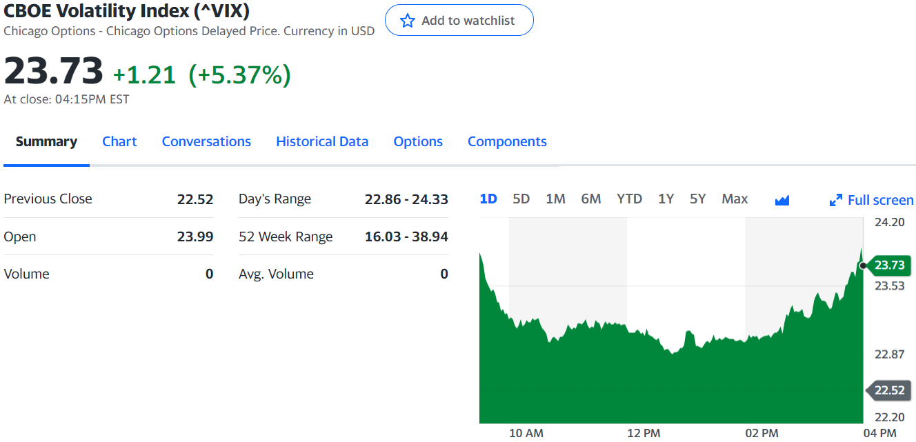 5. VIX 지수 (공포지수) : 대체로 VIX가 높아지면 주가는 폭락하는 경향.