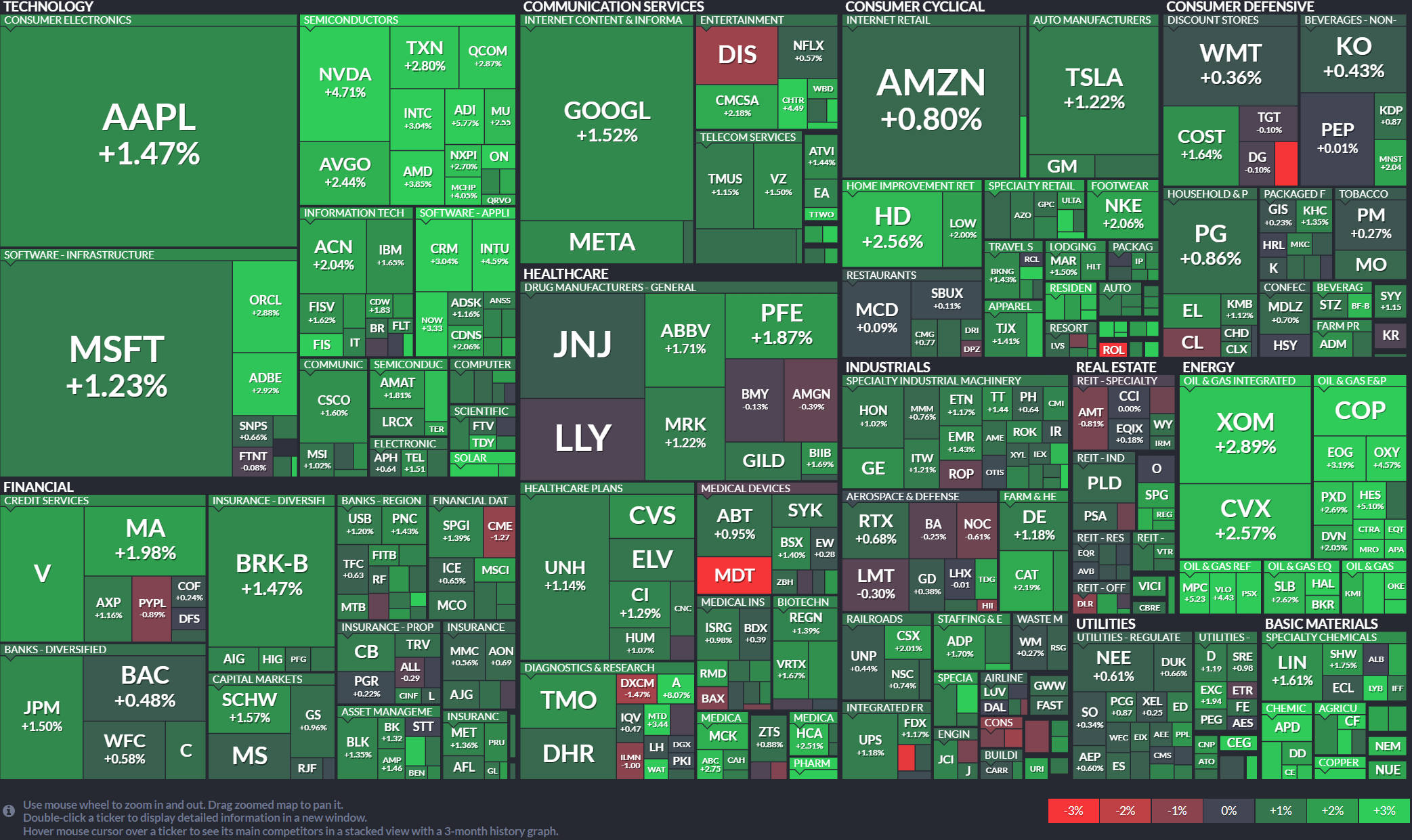 1. 다우 +1.18%,나스닥 +1.36%,S&P 500 +1.36%