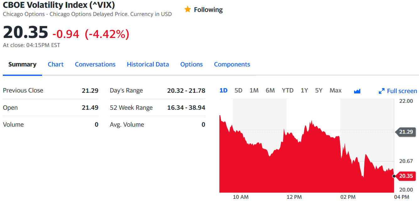- VIX 지수 20 이하 : 과매수 구간 매도 고려 (흥분 구간)