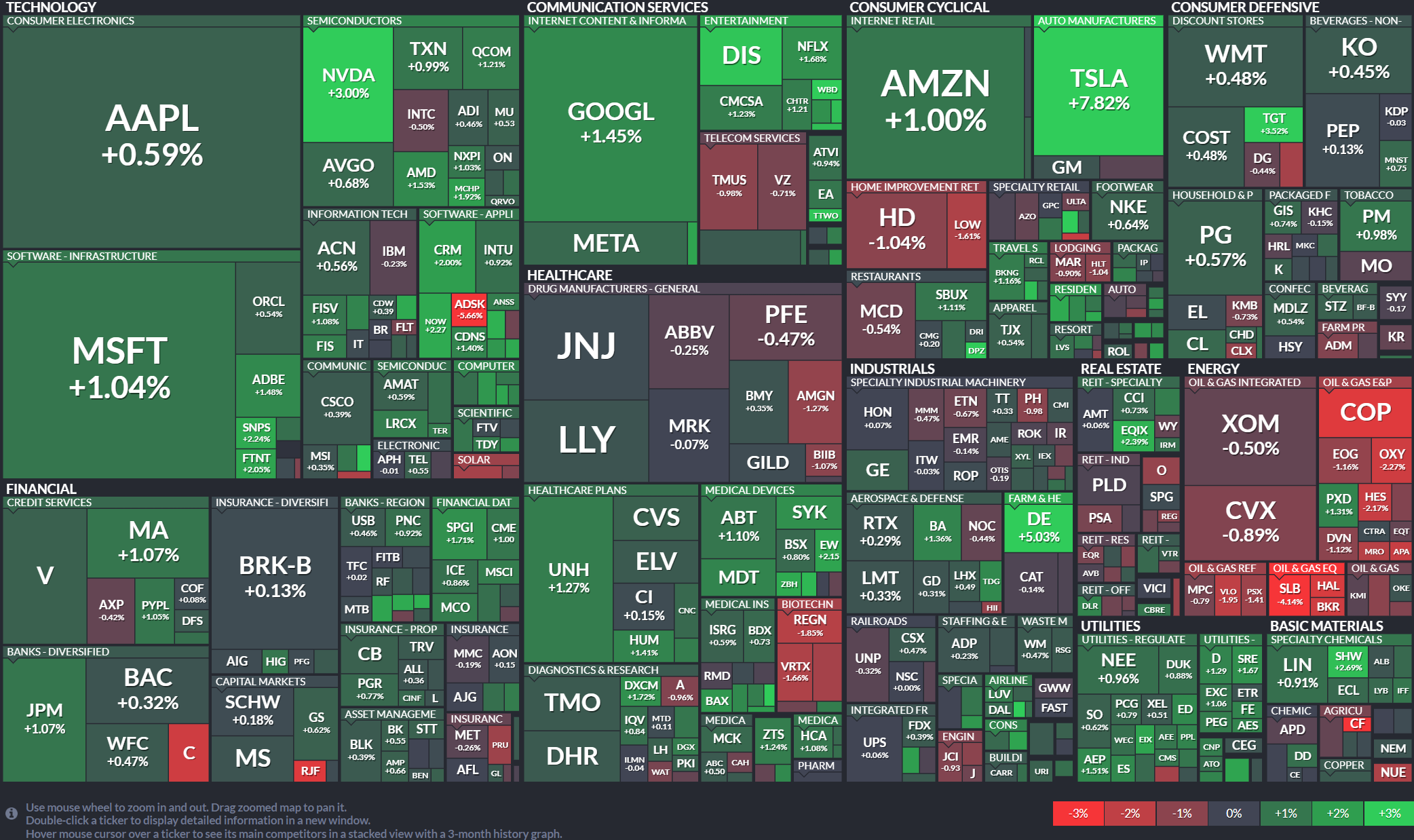 1. 다우 +0.28%,나스닥 +0.99%,S&P 500 +0.59%