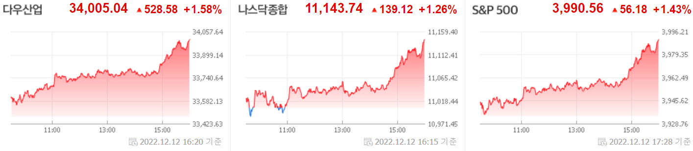 증권 > 해외증시 뉴스: 내일인 13일(현지 시간)부터 차례로 11월 미 소비자물가지수(CPI)와 12월 연방공개시장위원회(FOMC) 결과가 나오는 가운데, 12일...