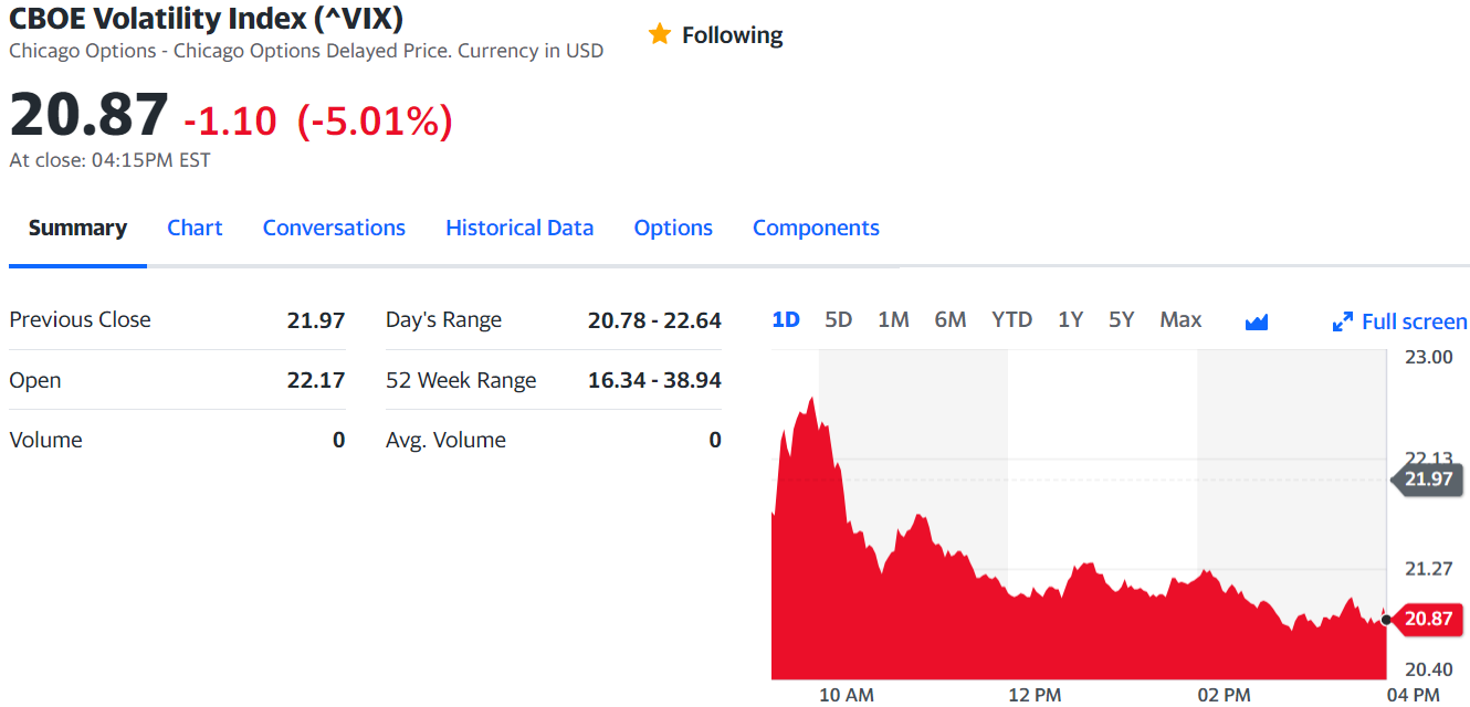 - VIX 지수 20 이하 : 과매수 구간 매도 고려 (흥분 구간)